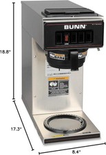 Manual pourover operation (no plumbing required). (1) BUNN VP17-1SS Pourover Coffee Brewer. Manufacturer:BUNN-O-MATIC Corporation. Follow manufacturer instructions for optimal performance. No plumbing required – manual water fill.