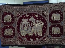 Burmese Kalaga Tapestry Elephants Embroidery Wall Hanging Vintage