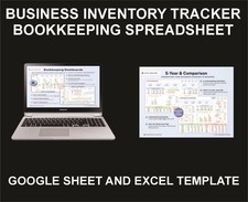 Business Inventory Tracker, Bookkeeping, Excel and Google Sheets Template