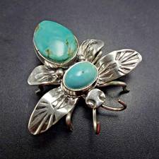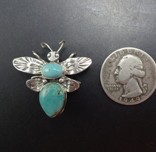 STERLING SILVER BEE PIN/BROOCH with BLUE TURQUOISE CABOCHONS. STERLING:yes, stamped STERLING. Like what you see here?.