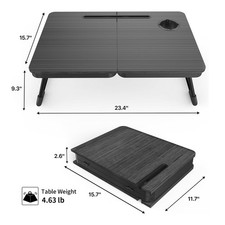 Enjoy an ergonomic setup whether you’re sitting cross-legged on the sofa or lying comfortably in bed. PERFECT FOLDABLE DESIGN: 23.43"(L)x15.75"(W)x9.25"(H). This laptop bed desk is designed to be foldable, allowing you to easily open the table legs for use without any assembly.
