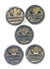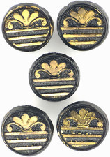 C1900-15 Antique Black Glass Gold Luster Palmette Fleur de Lis Button Set LOT 5