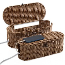 Cable Management Box 2Pack Brown, Handwoven Large and Small Cable Organizer B...