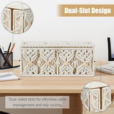 Cable Management Box Handmade Macrame Cord Storage Organizer Power Strips Out...