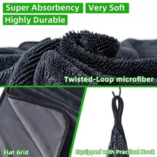 CADONO Large Microfiber Car Drying Towel, Ultra Absorbent Microfiber Cleaning Cloth for Cars, Bath Towels, No Streaks, Scratches, or Water Spots Double-Twist Pile Design(36"x 24"). Its unique structure gives the towel unparalleled water absorption ability, which can quickly absorb a large amount of water and dirt.