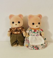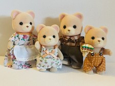 The Calico Critters Cuddle Bear Family is in very good used condition and includes 4 figures, clothing and a hamburger accessory.