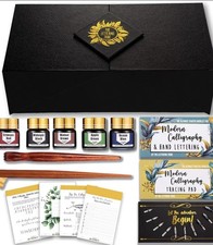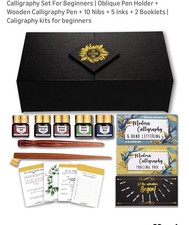 Includes oblique, pen holder and wooden calligraphy pen + 10 Nibs + 5 inks + 2 Booklets.