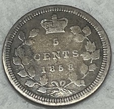 CANADA 1858 Large Date Silver 5 Cents.
