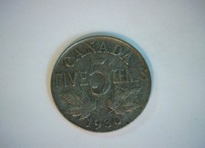 Canada 1930 5 Cents George V 5 Cents (Large ) Coin