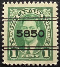 Canada KGVI 1 Cent Green Mufti Issue - Numeric Precancel "5850"