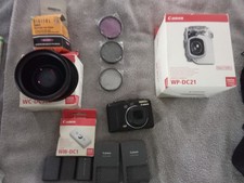Canon G9 camera with accessories. Note the camera is not working at this time but might be fixable. included is digital camera waterproof case by Canon wp-dc 21, waterproof case weight ww-dc1, wide converter wc-dc58b, carrying case, conversion lens adapter and lens filters. batteries and battery charger included but the batteries may not be operational.