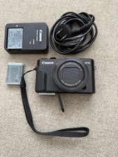 Canon PowerShot G7X Mark II compact digital camera in black. This camera is very popular for photography, vlogging, and YouTube content thanks to its fast f/1.8–2.8 lens and excellent image quality. Features a 20.1 MP sensor, 3-inch LCD screen, and USB connectivity. Small, powerful, and easy to carry. Includes: • Canon PowerShot G7X Mark II Camera • 3 Batteries • Charger Condition: Pre-owned. Tested and working well. Please review all photos for the exact condition. No manufacturer warranty included.