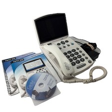 The Captel 840i is a trimline corded telephone manufactured by Ultratec. It is white in color and features speakerphone capability and internet connection. This phone was used once and is in like-new condition. Perfect for those in need of closed captioning assistance with their phone calls, the Captel 840i offers a convenient and stylish solution for enhancing communication at home.