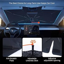 【UNIVERSAL WINDSHIELD SUN SHADE SIZE】Umbrella Sun Shade for Car Windshield expanded size is 29.7 x 47.2in, fit right into most compact car, Sedan, SUV, MPV, Minivan, Pickup Truck,ect. 【HEAT BLOCKER & SUN PROTECTION】Umbrella sunshade for car windshield can block 99% UV rays, Effectively maintain your car interior temperature to keep your vehicle stay cool.
