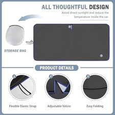 Double-layer design with first silver reflective layer and the second layer is black heat insulation layers. The front windshield sunshade can effectively act as a protective shield for you and your car’s interiors from harmful UV rays.