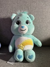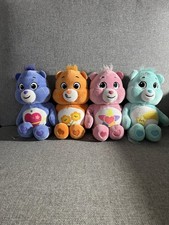 The product is a lot of four Care Bears plush bears, including the characters Friendships, Daydream, Valentine, and Wish Bear. These blue bear toys are part of the Care Bears franchise and are made of plush material. They are collector's edition bears manufactured in 2022, making them a perfect addition to any bear collection for fans of the Care Bears series. With a theme centered around animals and all occasions suitable for gifting, these Care Bears Basic Fun plush bears are a nostalgic and heartwarming addition to any teddy bear enthusiast's collection.
