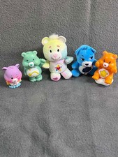 Mixed lot of 5 Care Bears mini toys. Includes 2 plush bears, 1 squishy bear, and 2 hard plastic figures. Colorful assorted characters. Great for collectors, kids, or display. Pre-owned with light wear from normal use. Please see photos for condition and details.