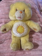 The product is a 14" Care Bears plush Funshine Bear from 2004, featuring magnetic hands and the ability to sing 3 songs. This interactive, battery-operated bear is part of the Care Bears franchise and is characterized by its yellow color and orange eyes. A classic addition to any collection of bears or Care Bears memorabilia, this plush bear is sure to bring joy to both children and adult collectors alike with its fun and playful features.