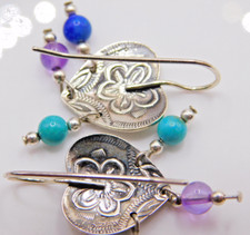 Carolyn Pollack QT Multi Stone Etched Sterling Silver Heart Dangle Earrings