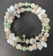 CAROLYN POLLACK-Sterling SW Agate Quartz Bead Memory Wire Cuff Bracelet additional preview