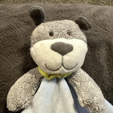 Carter’s Little Dreamer Gray Dog Blue Security Blanket Satin Lovey Rattle *Read* Tush tag is cut otherwise gently used preowned condition.