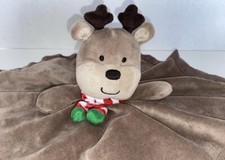 Carters My 1st Christmas Reindeer Lovey Rattle Security Blanket Brown Silky