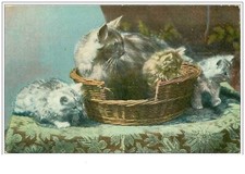ALL OUR POSTCARDS ARE GUARANTEED TO BE PERIOD (published between 1898 and 1940 EXCEPT if mentioned cpsm ) and are in good condition. VIEW THE SCANS TO SEE POSSIBLE DEFECTS (FOLD, STAINS, TEAR, etc.) OF THE CARDS. Do not hesitate to contact us for more details. OTHER SUPERB CPA AT THE MOMENT.SEE MY SHOP.cpcr95 - CATS.n°1489.KITTENS IN A BASKET ON A TABLE.