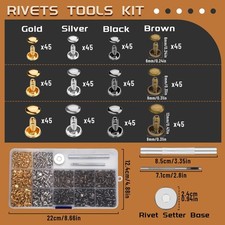 Leather Rivets: Rivet kit contains 540 rivets, including 45pcs each of 3.15×4.72in, 3.15×3.15in, 2.36×2.36in in black, brown, silver and gold. Leather Rivet Kit Is Easy to Operate: Screw rivet kit includes professional hole puncher and fixing tool for secure rivet installation.