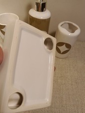 Ceramic Bathroom Accessory Set, 4 Pc., White & Tan, Diamond Lattice
