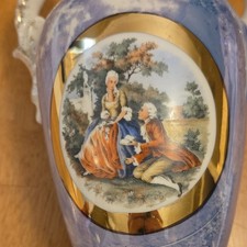 Ceramic Figural Table Lamp Blue White Gold Art Nouveau Romantic Theme