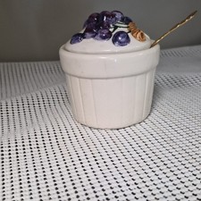 Ceramic Jam Jar with Grape Motif, Lid, Spoon, Glossy Finish, Fruit Pattern additional preview