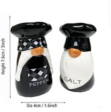 Ceramic Salt & Pepper Shaker Sets Farmhouse Salt Shaker Rustic Kitchen Decor Tabletop Accessories Cute Chef Design Housewarming with Box Salt and Pepper Seasoning Set (Black & White). Lovely Chef Design: Made from high quality ceramic 3D details with glaze, black and white salt and pepper shaker with lovely chef design.Bring cozy charm to your kitchen with this ceramic salt and pepper shaker set.