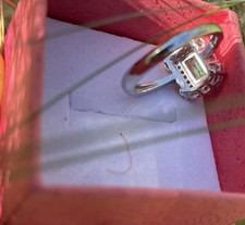 Certified natural emeralds adjustable size ring set around zircons in silver. Ring size is adjustable just gently pull both shank outward to make it larger and inward to make it smaller. Come with the original certificate in Chinese.
