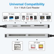 There are 1 CFast slot, 1 SD, 1 Micro SD, 1 CF, 1 XD at your choice and convenience. which can greatly improve your work efficiency. Portable & Compact: Compared with others, this aluminum design USB C CFast Card Reader has excellent heat dissipation and ensures stable connections for a longer service life.