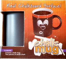 Function : Chalkboard surface for writing and customizing your mug. Style : Fun, practical, and perfect for personalizing your drinkware. Get creative with thischalkboard ceramic mug cup. Perfect for customizing your morning coffee or tea, thisreusable mug features achalkboard surface where you can write, draw, and erase.