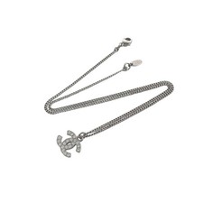 CHANEL Necklace 10V Coco Mark Rhinestone Stone Silver Logo COCO