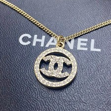 CHANEL Necklace Coco Mark Rhinestone Stone Circle Gold Logo Round