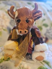 Alpine is part of Charlie Bears 2024 Labyrinth Collection. He is designed by Isabelle Lee and Charlotte Morris. He is a 12-inch fully jointed plush cow featuring a unique mix of brown and white splotches, soft brown horns and hooves and includes a decorative neck bow. Alpine has his original tags and is part of a collection piece not played with and comes from a smoke and pet free home.