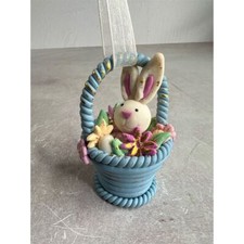 Charming Blue Easter Basket with Bunny & Flowers Polymer Clay Decor Ornament