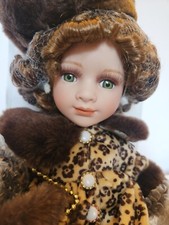 This Cheetah Safari Doll comes with a matching teddy bear wearing a winter coat. The doll is 15 inches in size and made of porcelain material. It features a vintage style and is perfect for collectors or doll enthusiasts. The set includes the doll and teddy bear, and is ideal for imaginative play or display. The brand/artist is unknown, but the doll is sure to be a prized possession. Whether you're looking to add to your collection or give a gift, this doll is sure to delight.