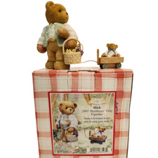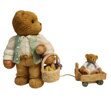 Made by Enesco, it is a sought-after item for collectors of Cherished Teddies. Cherished Teddies Mick. Bear with a picnic basket pulling a bear cub, in a sailor outfit, in a wagon.