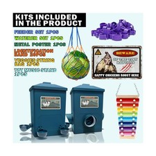 Hanging chicken feeder and waterer set - The chicken feeder and water dispenser can be hung on a wire fence or mounted on the wall to keep mud and bedding out chicken port feeder and chicken cup waterer.