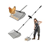 The "Chicken Poop Scoop" is a manual scooper designed specifically for collecting chicken droppings or litter. This tool helps backyard poultry enthusiasts easily clean and manage their coop, ensuring a clean and hygienic environment for their chickens. The product is compact and easy to use, making it a practical addition to any poultry farming setup.