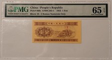 China, People's Republic 1953 1 Fen Note. Gem Uncirculated 65 Exceptional Paper Quality PMG.