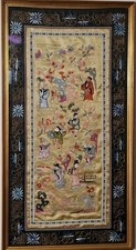 Chinese Art, Silk Embroidery In Perspex, with golden Frame Portrait 69cm × 37cm, size of it's golden coloured, wood frame 1.87