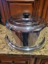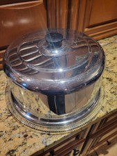 Chrome Dome Cake Cover With Pressed Glass Plate 12.5" Vintage Footed