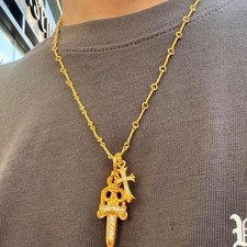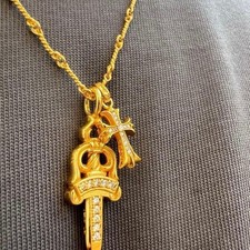 Chrome Hearts 22k Diamond Tiny Cross Chain Dagger Necklace