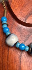 Chunky Eclectice Beaded Necklace Striking Large Blue White Artisan Glass OOAK