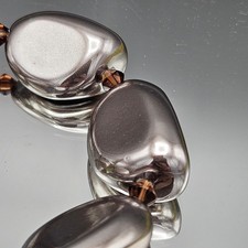 Chunky Statement Bracelet Silver Tone Smooth Pebble Beads Stretchy Bracelet