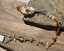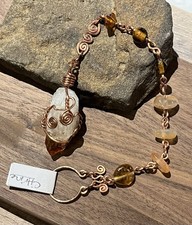 Beautiful Citrine Crystal wire wrapped in pure copper and hanging from handcrafted chain with orange/ yellow Agate beads and amber colored glass trade beads. End of piece has round loop designed to slip and off the fingertip for easy use. Pendulum can be used for Yes/No divination. It can also be hung for crystal decor.